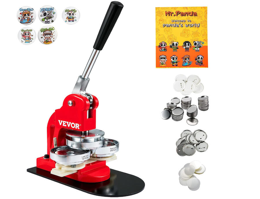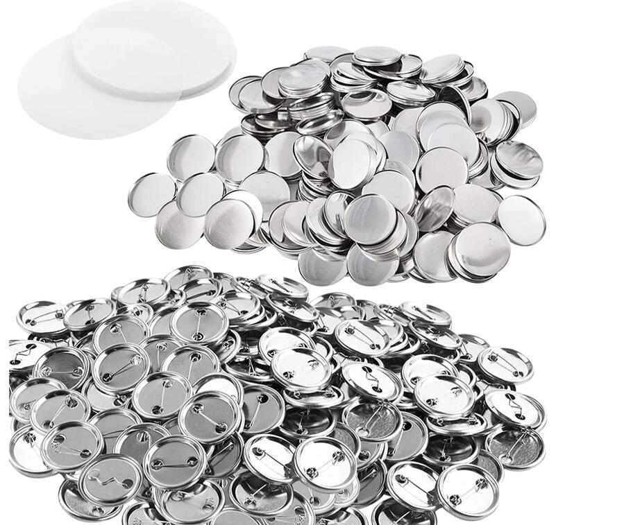 I use these to make my button pins, it includes some parts to create your buttons but the backing is made out of plastic. I recommend buying metal.